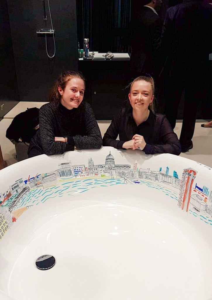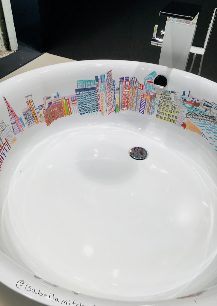 For the launch night of the Sleep & Eat hospitality tradeshow, Bathroom specialists Bette invited myself and fellow illustrator and friend Jessica Sian to decorate their showcase BettePond Silhouette round bathtub.