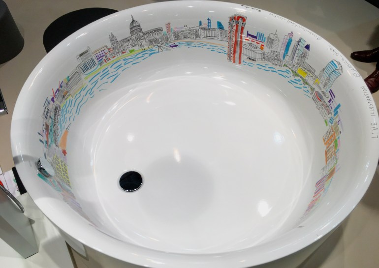 The brief was to create an artwork live in front of visitors, using permanent markers that would usually stain a bath. However, thanks to the Silhoutte’s easy-clean glazed surface, the bathtub would be wiped down in sections during the two day event – bringing it back to looking brand new.