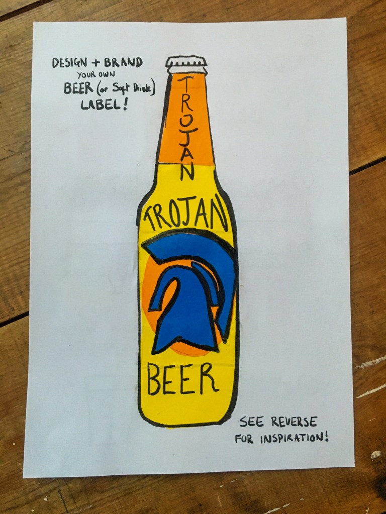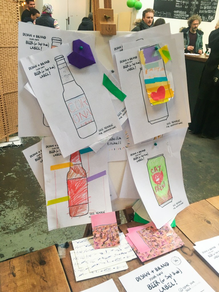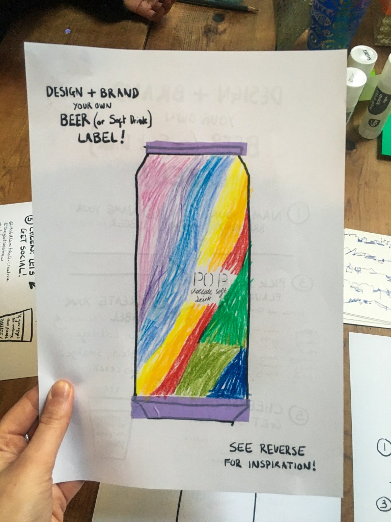 Workshops welcomed all ages and interests, including samba, capoeria, rap therapy, jewellery making, T-shirt screen printing and my own drawing-focused workshop – Design + Brand your own Beer (or soft drink).