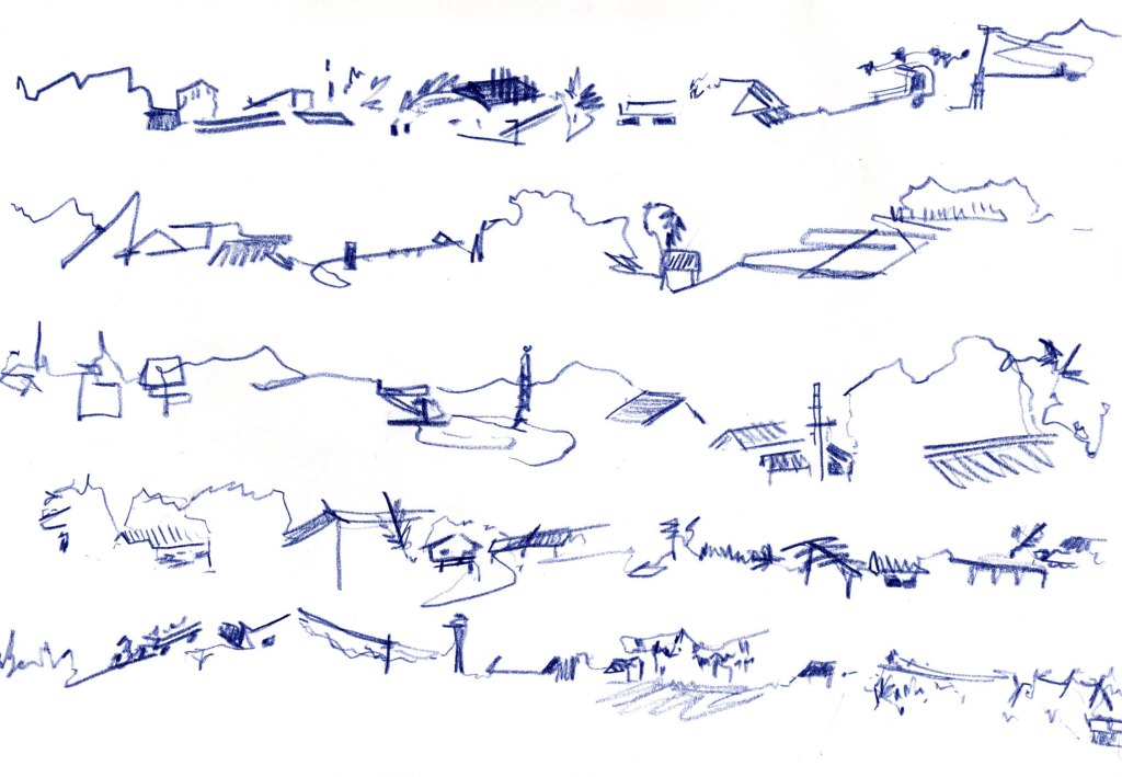 Below, we find ‘Train Journey’, a pencil drawing on paper of A4 size. As the name suggests, this piece was drawn from life, and depicts the rolling landscape as seen through a moving train window.